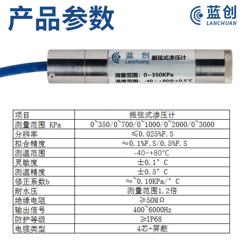 Used for long-term burial in hydraulic structures or other concrete structures and soil, measuring the permeability (pore) water pressure inside the structure or soil, and synchronously measuring the temperature of the burial point. The installation of supporting accessories can be used in pressure measuring pipelines and foundation drilling. The all stainless steel structure has a flexible volume and can be easily placed in narrow areas that need to be measured. It has parameter recognition function.