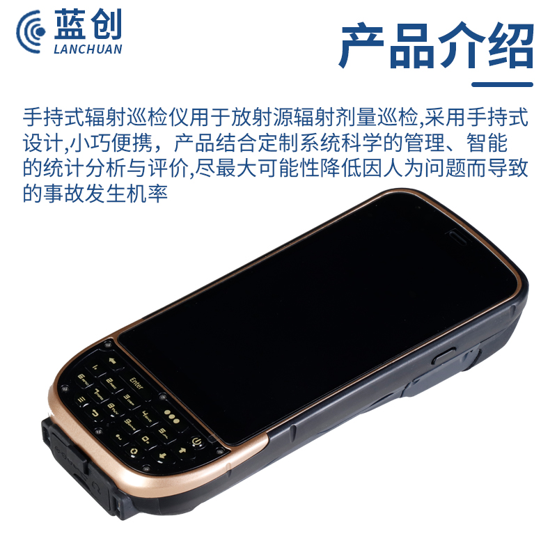 The handheld radiation inspection device is used for radiation dose inspection of radiation sources. It adopts a handheld design, is compact and portable, and has passed military explosion-proof testing and P65 waterproof level. It has the characteristics of high recognition rate, short response time, high measurement accuracy, and GPS positioning accuracy. The product combines customized system scientific management, intelligent statistical analysis and evaluation to minimize the probability of accidents caused by human factors, and provides certain traceability methods after accidents occur, ultimately achieving the goal of safe production and accident free operation of radioactive sources.